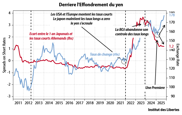 Le yen en mai 2024 était deux écarts types sous-évalué et donc le moment était venu de regarder la différence des taux entre les deux monnaies. La voici.