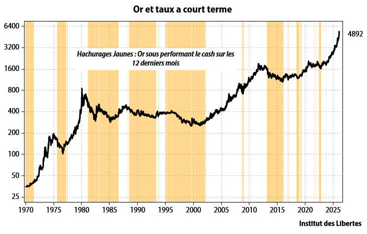 Première question : l’or fait il mieux que le cash en dollar ? Vérifions