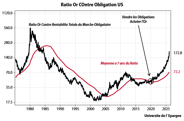 Le dernier signal d’achat sur l’or contre les obligations US a été enregistré en janvier 2020 et reste valable.