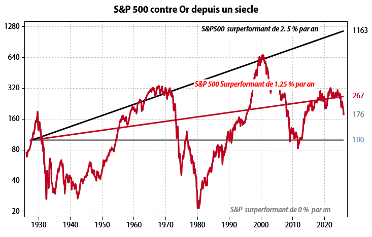 Mais l’or n’est-il pas grossièrement surévalué par rapport aux actions US par exemple ?